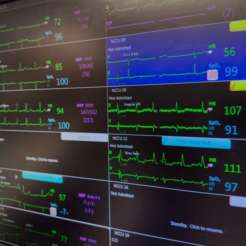 Hospital Monitor Displays Vital Signs: Heart Rate, Blood Pressure, EKG, And Oxygen Levels, Symbolizing Patient Health By Jeff Brull | November 6, 2025